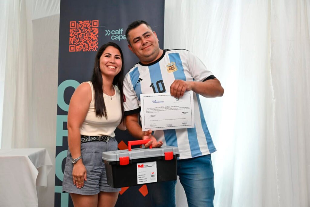 SENILLOSA (ED). — La Municipalidad de Senillosa y la cooperativa CALF concretaron la entrega de certificados a 16 nuevos operadores eléctricos Nivel 1, quienes además recibieron una caja de herramientas completa para dar sus primeros pasos. Se trata de un trabajo conjunto que permite una salida laboral inmediata a quienes completaron el curso.
