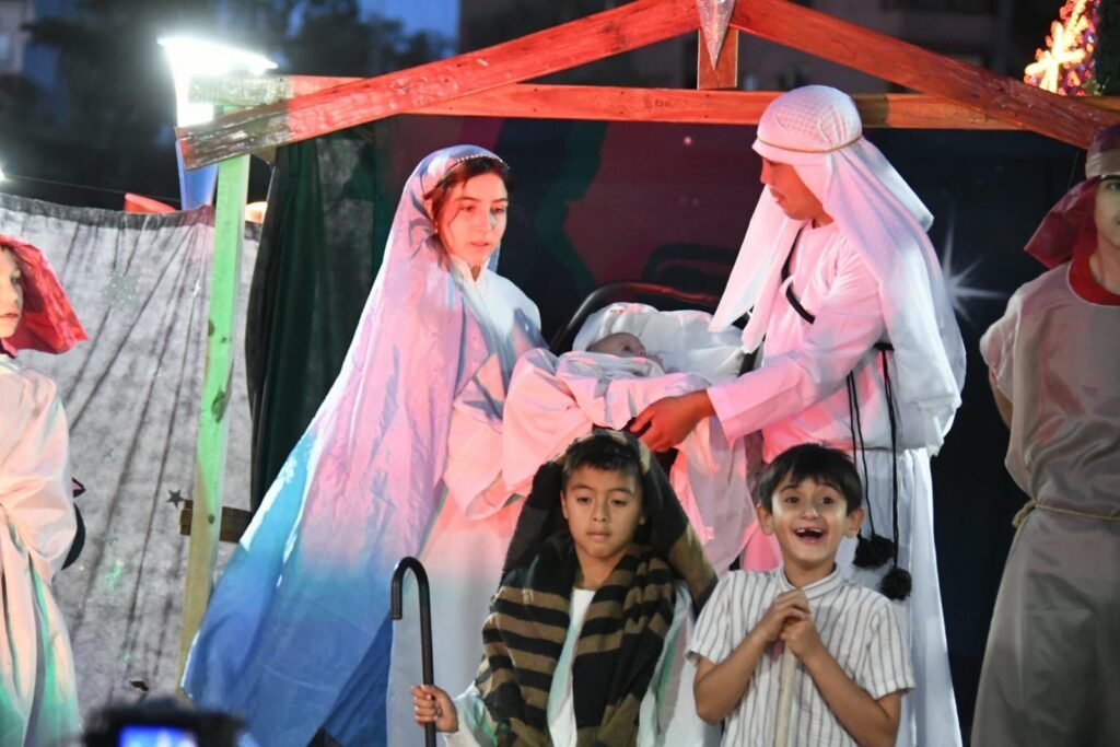 La escenografía se desplegó bajo el imponente árbol de Navidad que la Municipalidad de Neuquén instaló sobre la avenida Argentina y junto al encendido de sus luces se dio inicio a este pesebre que emocionó a todos los presentes.