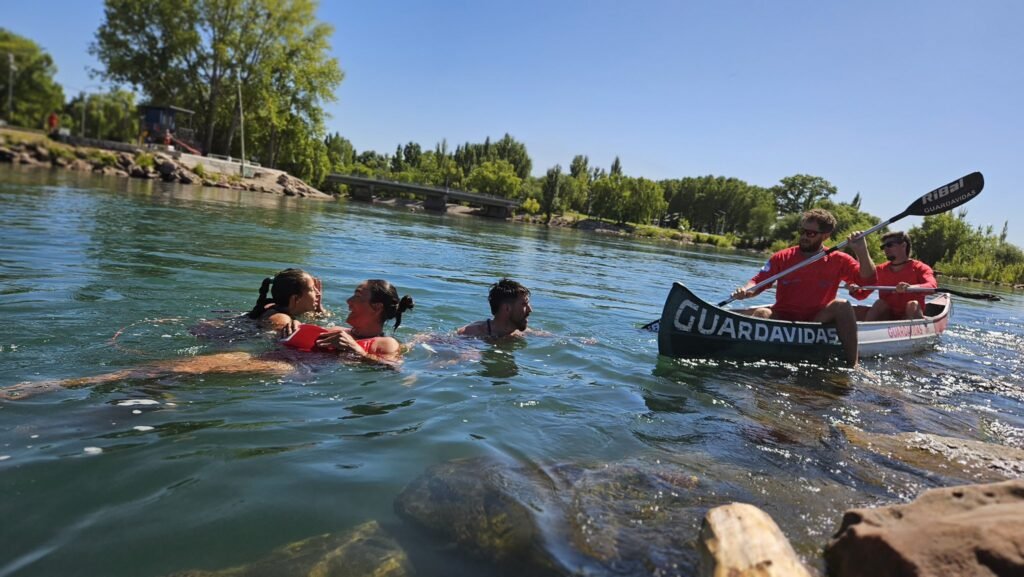 Rambado señaló que el río Limay es dinámico y cambia constantemente: aparecen remolinos, se modifican las islas y se forman pozones profundos. “Por eso insistimos en que la gente se acerque al puesto de guardavidas antes de meterse al agua, antes de hacer una flotada o de navegar en tabla”, explicó.