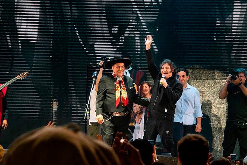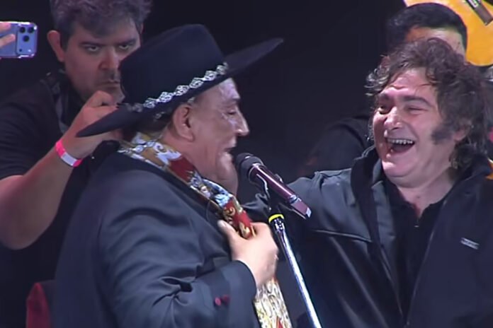 Ante la invitación de Palavecino para cantarlo a dúo, el Presidente intentó excusarse inicialmente alegando que “no le da el piné” y que él es un “amateur” al lado del folclorista. Sin embargo, tras la insistencia del músico —quien le recordó su pasado rockero y cantando temas de Leonardo Favio—, Milei subió al escenario.