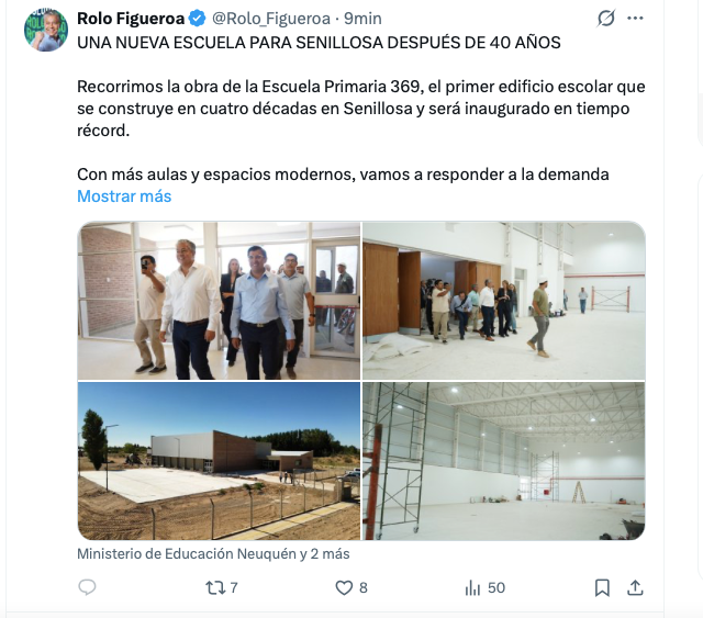 La escuela es el primer edificio escolar que se construye en cuatro décadas en Senillosa y será inaugurado en tiempo récord gracias a una decisión política del gobierno de Figueroa de privilegiar la educación pública en todo el territorio.