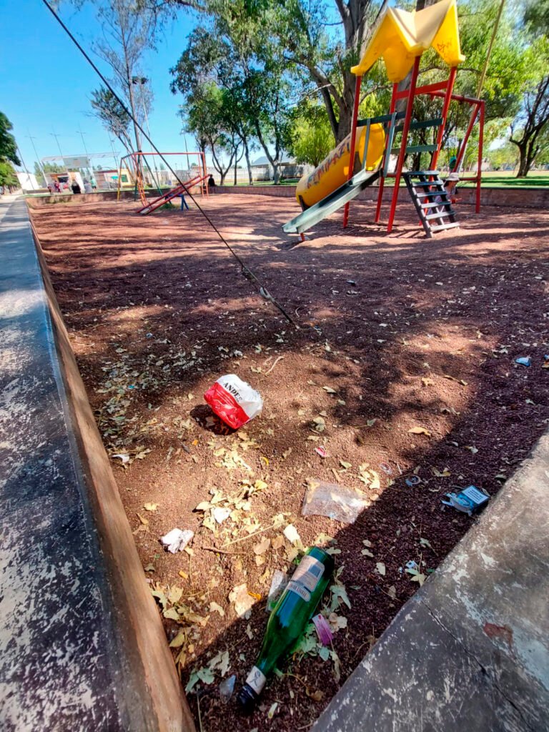 El problema no se limita a la periferia. El incumplimiento del servicio de limpieza también se nota en el centro de la ciudad, sobre todo los fines de semana. Plazas céntricas como el Parque España amanecen los domingos llenos de basura, sin cestos suficientes ni tareas de limpieza visibles.