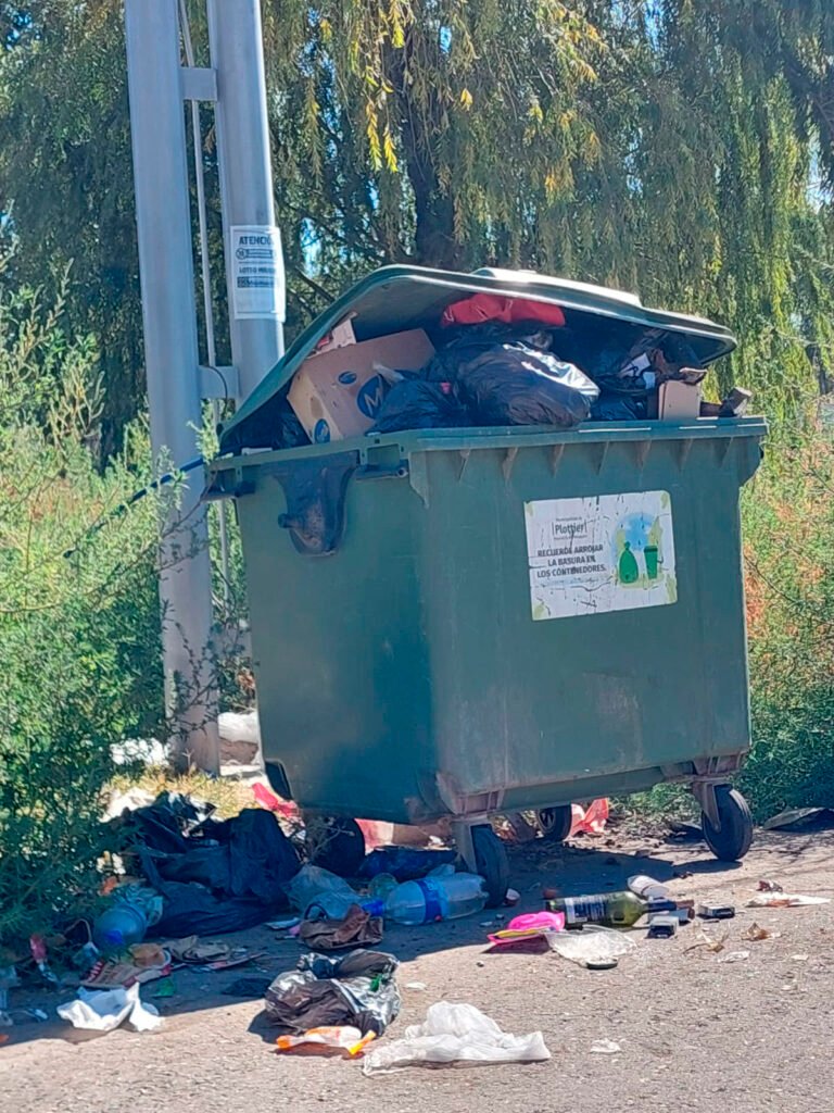 La situación se repite en el barrio Mirasur, donde las familias cuentan con un solo contenedor que rápidamente colapsa. En los últimos días, la basura llegó a acumularse durante más de una semana, generando malos olores, moscas. La desidia solo recibe respuesta en los medios.