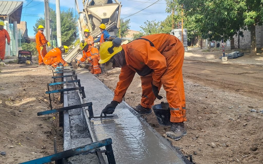 Previo al asfalto, se concretan tareas de cordón cuneta en calles como Buenos Aires, Chubut, Podestá, Mitre y Elordi, facilitando la planificación urbana y la correcta evacuación de aguas pluviales.