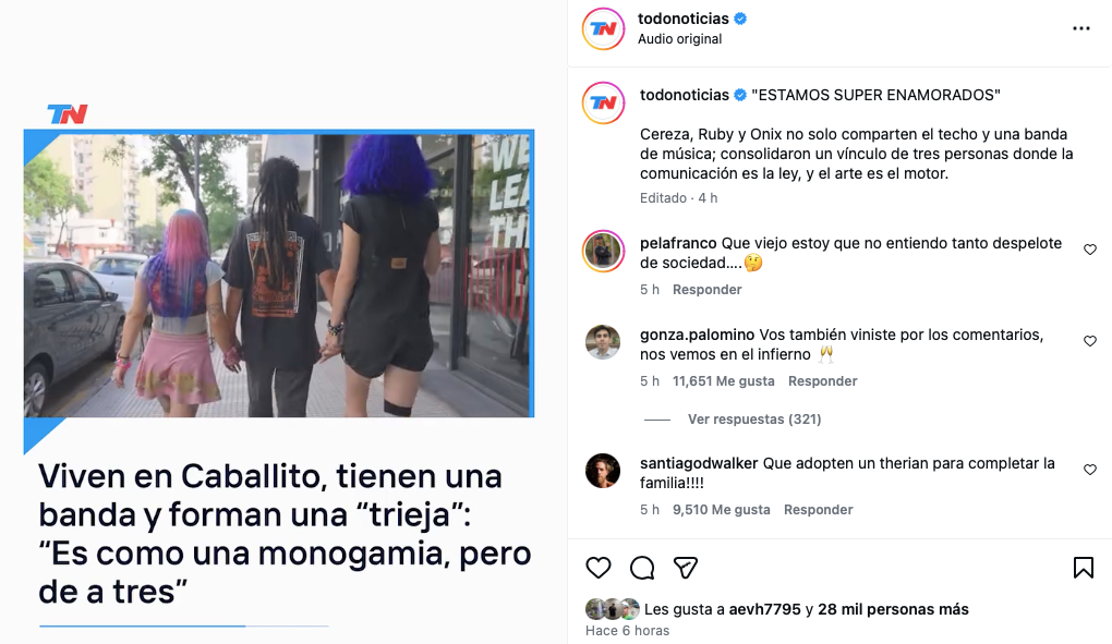 BUENOS AIRES (ED) — Una nota publicada por Todo Noticias (TN) sobre una pareja o mejor dicho una “trieja” que vive en Caballito terminó generando mucho más que curiosidad. Las redes sociales estallaron con ironías y comentarios disparatados que vendieron más que la propia noticia. Lo que la transformó en un verdadero fenómeno viral.