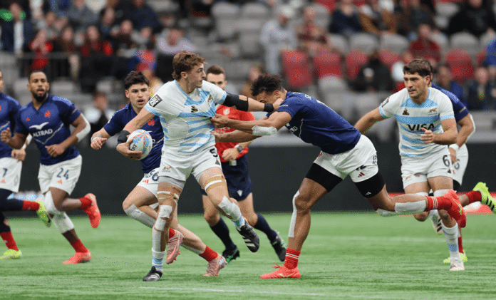BUENOS AIRES (NA) — La Selección argentina de rugby seven se impuso por 34-15 ante su par francés en el partido que disputaron ayer por el quinto puesto del Rugby Seven Series. Los trys argentinos fueron convertidos por Sebastián Dubuc, Santiago Vera Feld, Luciano González, por duplicado, Santino Zagara y Marcos Moneta.